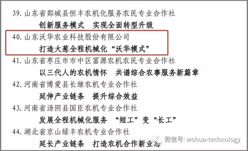經(jīng)過沃華人的不斷努力,山東沃華大蔥全程機械化和社會化服務(wù)已被農(nóng)業(yè)部選入全國案例70個之一。沃華模式正式被國家認(rèn)可并推向全國!!