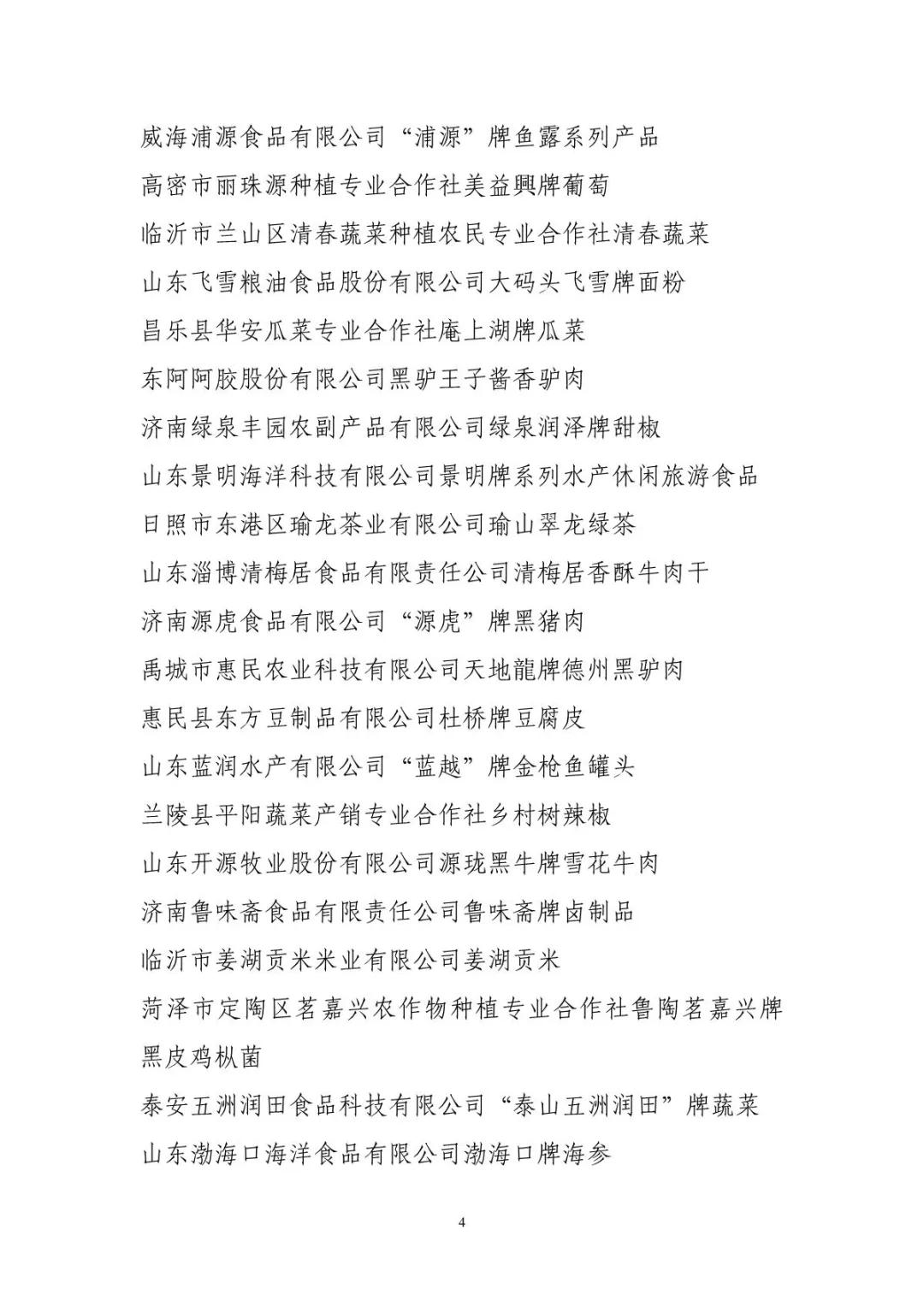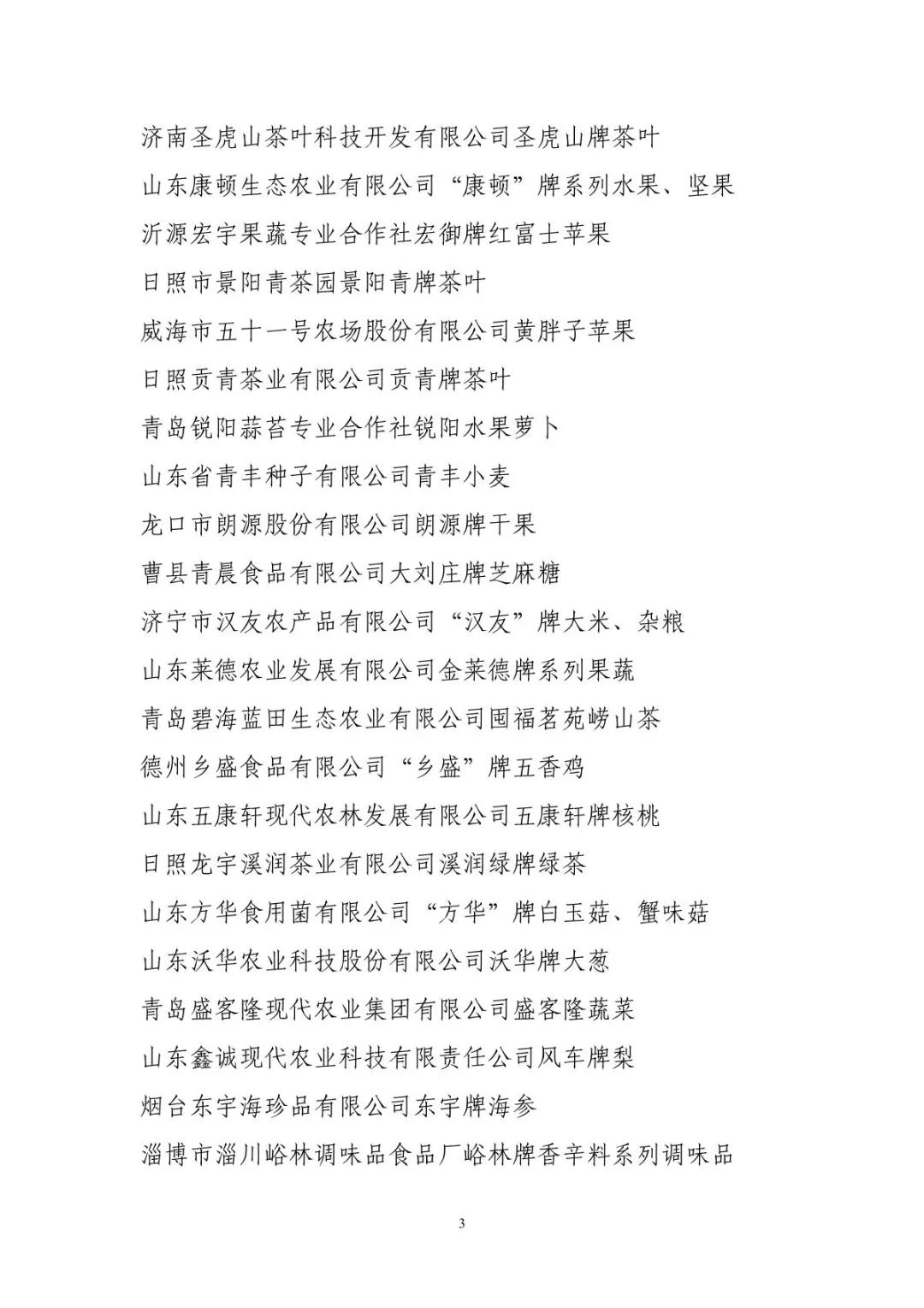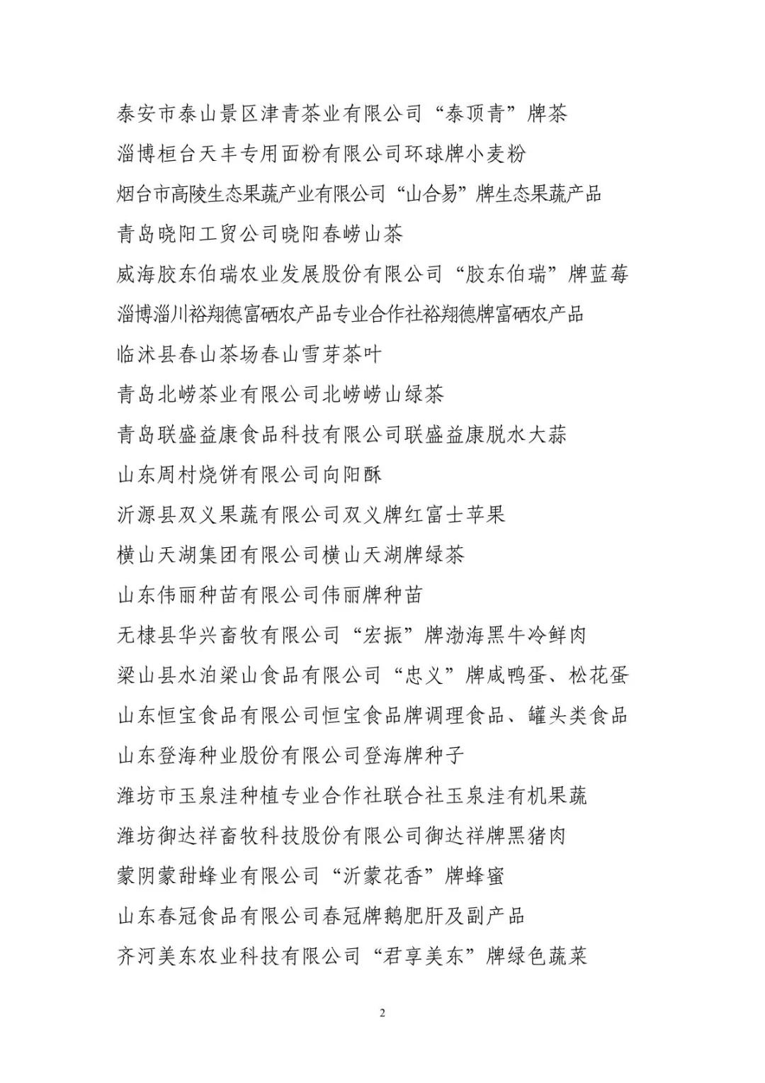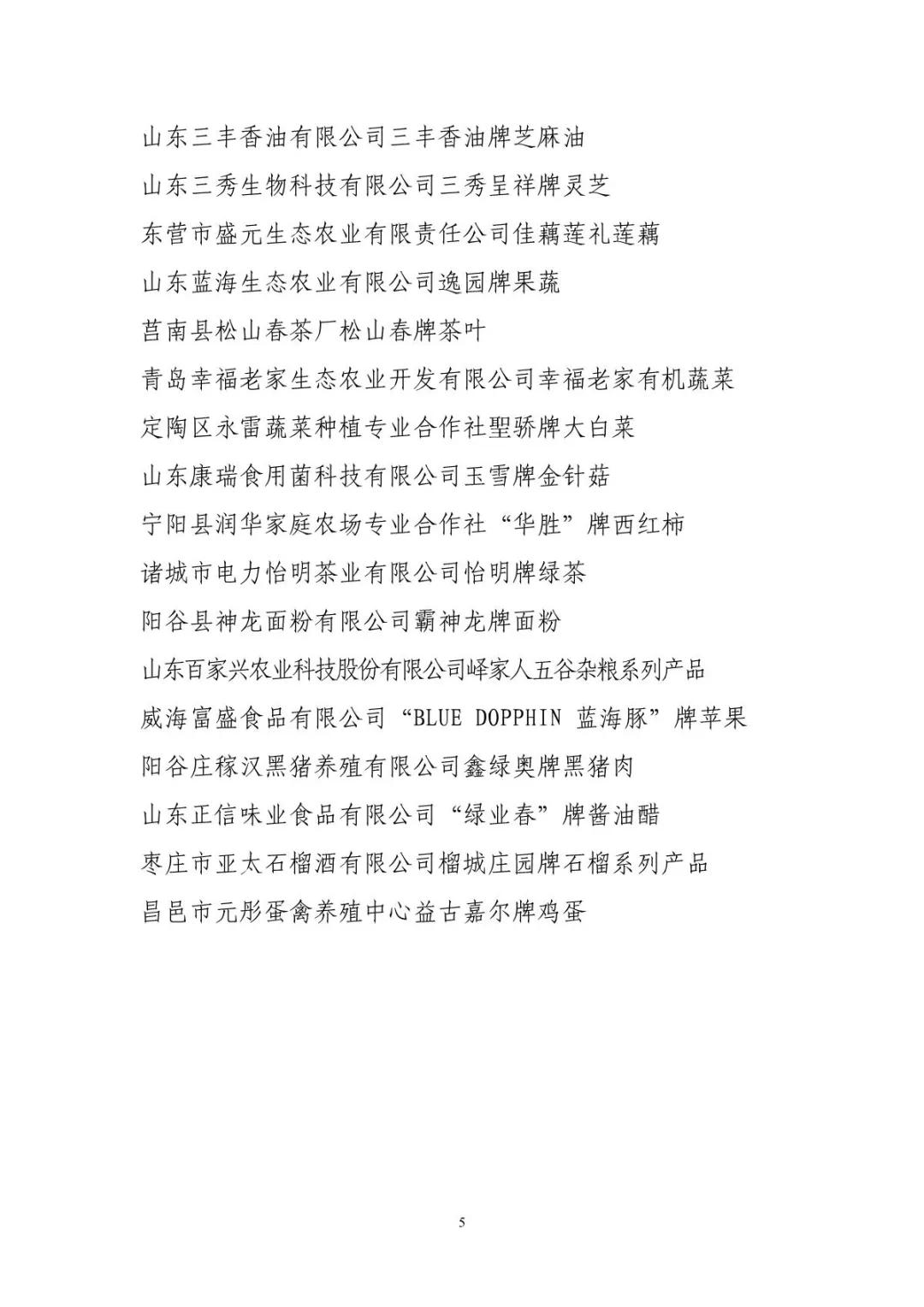 山東省第五批知名農產品區域公用品牌和企業產品品牌公示
