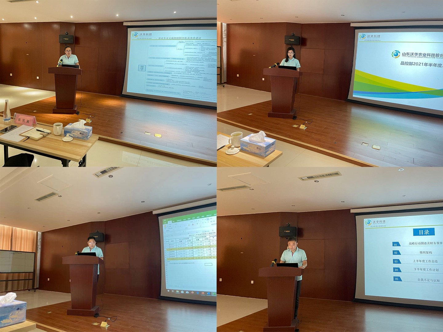 山東沃華農業科技股份有限公司2021年中述職報告會于7月23日在郚山辦公樓會議室隆重舉行,公司總經理張笑笑及各部門主要負責人、后勤管理人員參加會議。