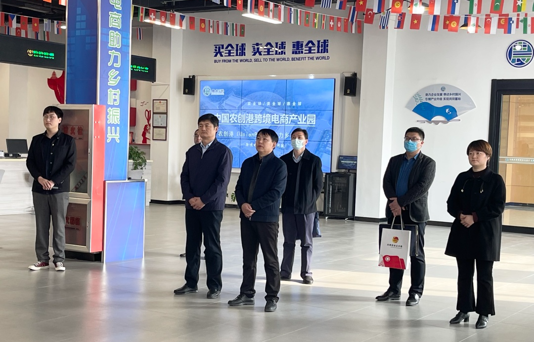 在中國農創港跨境電商產業園,調研組詳細了解了產業園發展情況、運營模式和相關平臺功能,參觀了產業園青年創業孵化中心,并對跨境電商平臺搭建、跨境電商青年人才引育給予了充分肯定。